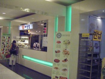 冷麺、ロッテリア、ビビンバ、カルグクス、パスタ&ピザなどのお店がならんだフードコート。
