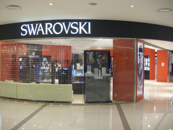 スワロフスキー。その他、フランコフェラーロやペリーエリスアメリカなどのショップがあります。