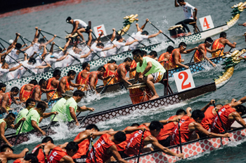 6月:端午節は日本でもありますが、香港ではこの日に粽を食べる風習があります。端午節前後の週には、尖沙咀、赤柱、元朗などの香港各地でドラゴンボートレースが開かれます。