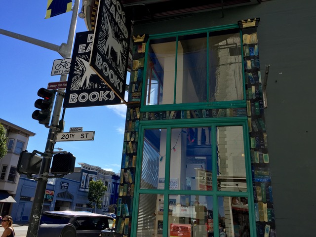 バレンシアと20thの角は、外壁が印象的な古本屋さん『ドッグイヤードブック(Dog Eared Books)』 昔の風景の写真集とかつい買ってしまうんです(重いのでその後ちょっと大変)@ 900 Valencia ST