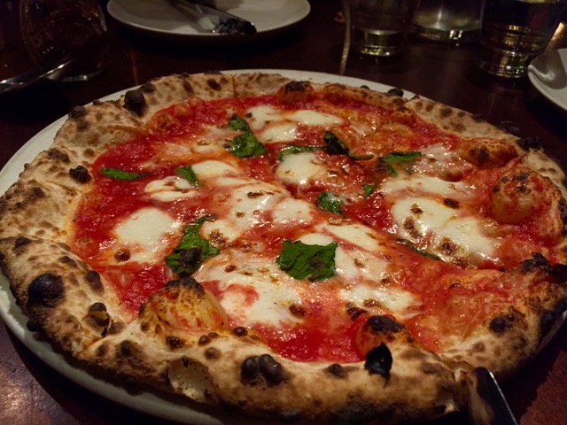 皆さんは、"初めて行くピザ屋さん" でここのピザはどうかなぁと自分なりに判断するピザってありますか? 自分の中で判断基準みたいな存在のピザ。 私は、ピザ屋さんには間違いなくあるピザ "マルゲリータ" を頼むんです。 入り口のキッチンでピザのドウを一所懸命こねて丸めて広げて、しかも "石窯オーブン(Masonry oven)" なので、お焦げさんは木が燃えたカマドの匂いがした。 生地のどっしりしたもっちり感があと引く。 約25センチ(10in)のピザ、多分一人で完食できると思った。 ピザ屋さんなのでマルゲリータじゃなくても頼むべき一品。 ザガットサーベイ(Zagat Survey)でも"S.F Best Napolitan-Style Pizza" の店舗の一つで紹介されていた。