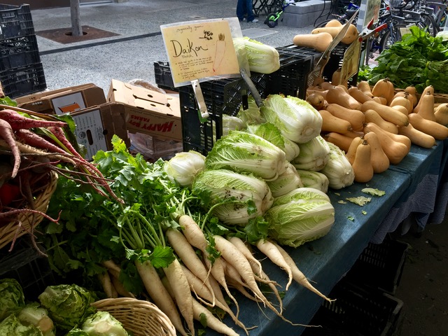 ファーマーズマーケットでは珍しく "小松菜・KOMATSUNA" 発見。 日系スーパーくらいでしか見ることがなかったのですが嬉しいですね。 多分これからいろんな市場に出始めると思う。