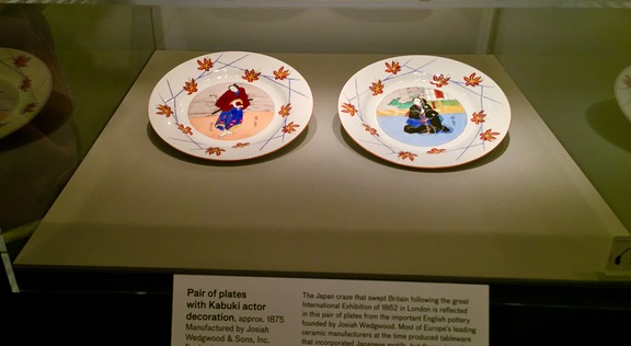 絵画ばかりではなくて、例えば英国ウェッジウッド(Wedgewood)が歌舞伎役者を描いたら目鼻立ちはスッキリしているけど、こういうデザインの皿になる。