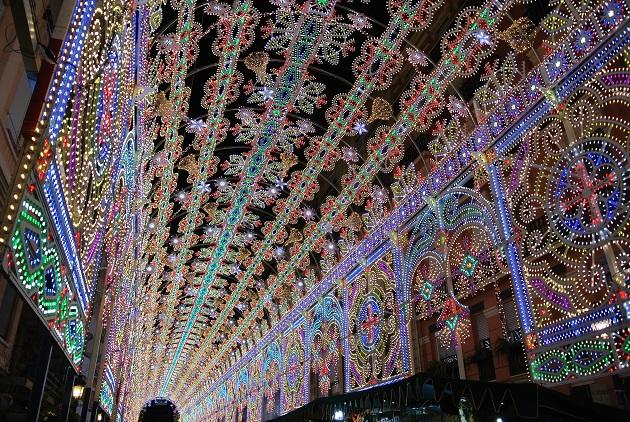 バレンシアの火祭りのお楽しみのひとつが大掛かりなイルミネーション。特にルサファ地区にある