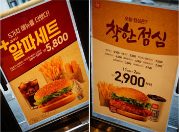 デリーバーガーセット2,900ウォンやチキンバーガーセット3,900ウォンなど