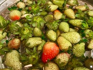実は去年、この白いイチゴはごく一部のファームだけで売っていて期間が2〜3週間くらい、つまり週一回のファーマーズマーケットだと2,3回くらいしかお目にかからなかった。 しかも量が少ないこともあって事前に予約しなければならなかったので、レストランくらいしか入手できなかった貴重なイチゴだった。 去年まで幻の『グリーン・ストロベリー(Green Strawberry)』 つまり緑色のイチゴ。