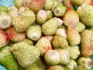 前置きが長くなったけど、今年は白いイチゴがマーケットで売られるようになった。