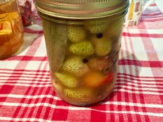 "ピクルス" といえば横文字っぽくておしゃれだけど、要は甘酢漬けなので、もし "未熟なイチゴ" が手に入ったら作ってみるといいですよ。 ざっくり言えば寿司酢にハーブ、スパイス入れてもいいかも。