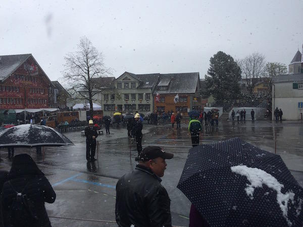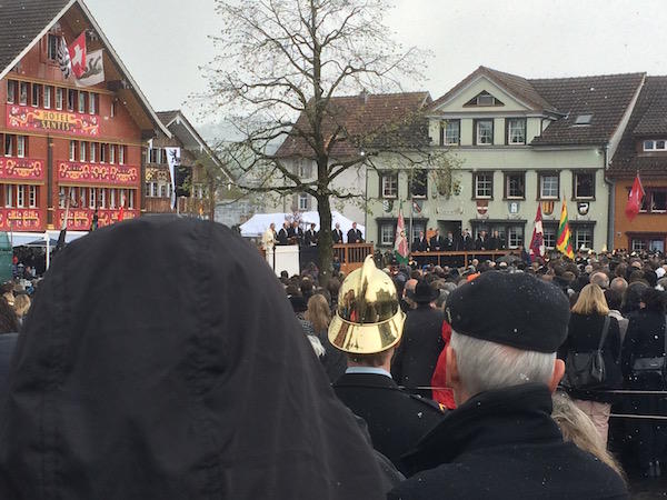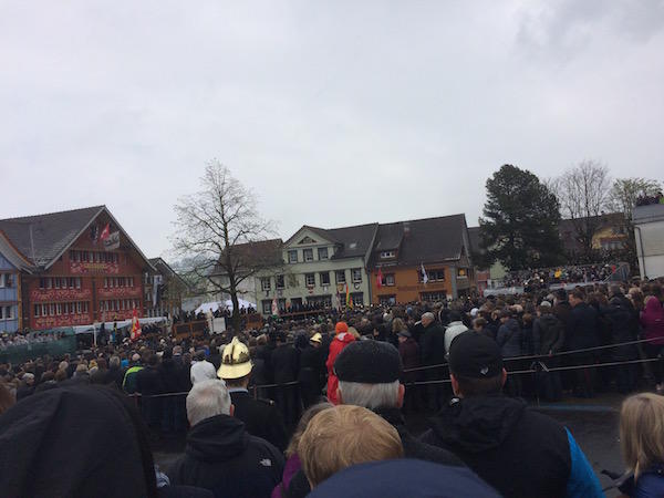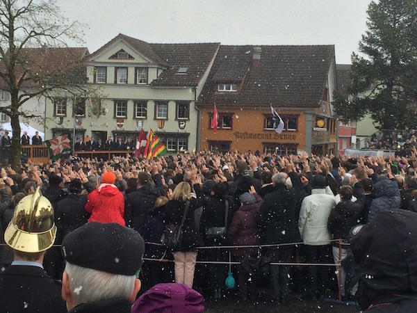 アッペンツェルの街の中心にある「ランズゲマインデ広場」に住民が集まり、なんと挙手によって投票を行うという昔ながらの(?)直接民主制スタイル。