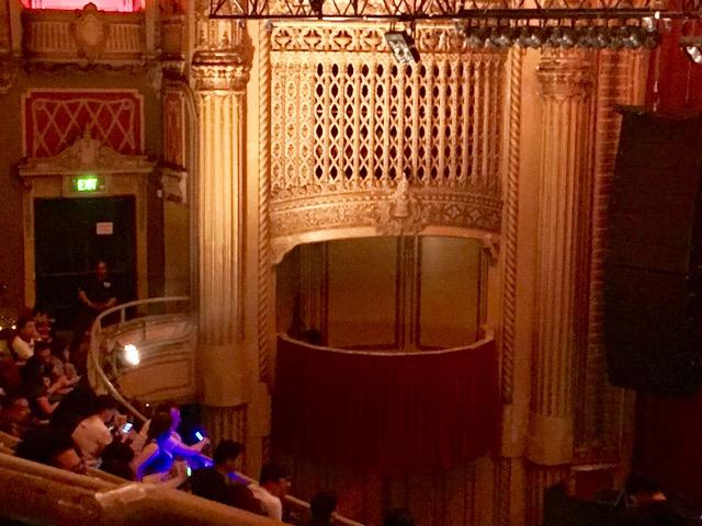 1922年に”LOEW’S WARFIELD” という名前で寄席や演劇用のシアターとしてオープンし、今は音楽用の劇場として使われている。 2300席あり、中はお城みたいなイメージでドームの壁画もフワフワと軽やかなタッチで描かれている。 老舗の劇場として有名な “カストロシアター” も同じ年に完成している。 両方とも古き良いサンフランシスコを象徴する良い建物だ。 今回、ミクさんもそうだけどこの内部を実際に見てみたかったんです。 内部と内容がミスマッチみたいだけど、そのアンバランスさもサンフランシスコらしいな。