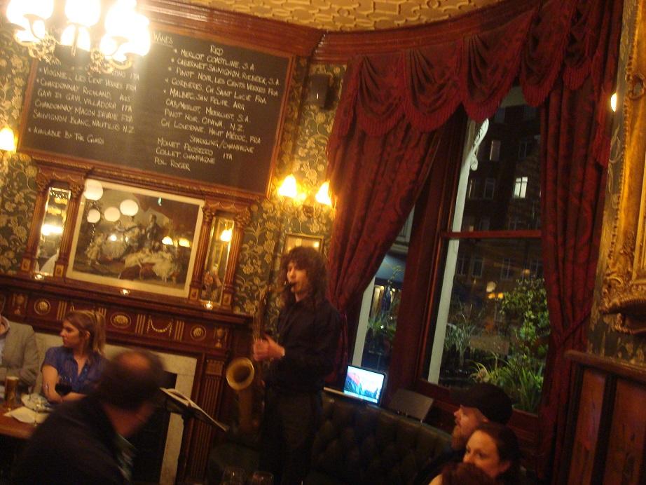 水曜の夜は、ジャズのライヴ演奏もやっています。人気パブなので、もしテーブルについて食事したい場合には夕方6時など早めに行った方が安全。でもイナセに(笑)カウンターで一杯・・・というのも良いですね!