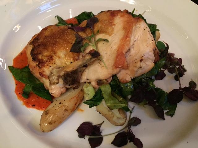 ハーブの効いた詰め物をした、チキン胸肉のソテー。どれもボリューム満点で美味しかったです!