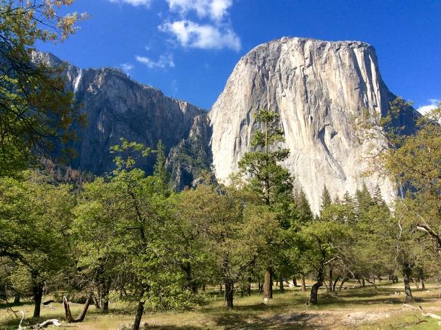 『エルキャピタン(El Capitan)』は、夕方5時頃に撮影された写真ですが、左側にかすかに『リボン滝(Ribbon Fall)』が見えていますが、6月くらいまでしかこの滝を見ることはできないそうです。
