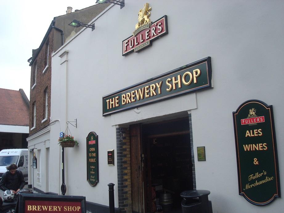 また、パブの隣りには醸造所ショップもあって、各種ビールはもちろん「フラーズ」オリジナル・グッズも色々あります。藤の花は盛りを過ぎてきたけれど、ビール好きな人へのお土産探しにも良さそうですね!