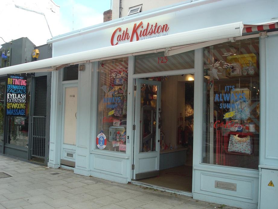 途中には沢山のレストラン&カフェやブティックなどもあるし、「キャス・キッドソン」の小さく可愛らしい店舗も♪ そして前方左にオレンジ色のスーパーマーケット「セインズベリーズ」が見えてきたら、その反対(右)にあるチズィック・レーンに入って行きます。