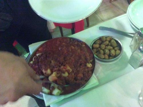 ニョッキも頼みました。横にオリーブも山盛りで出てきます。これがおいしいのですが、あまり食べることができません。残念!