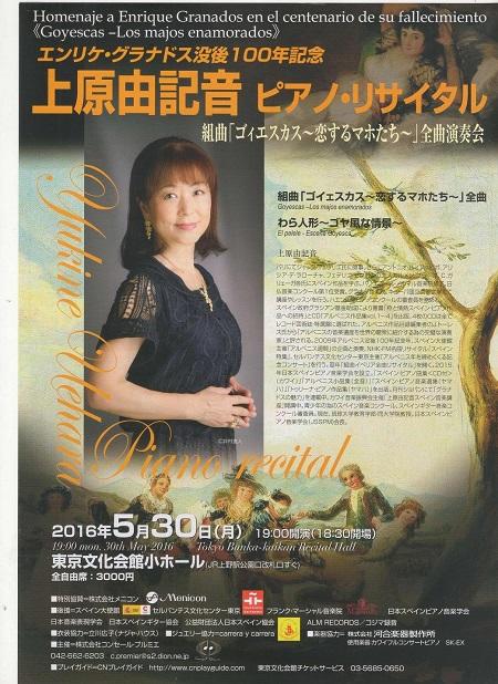 これを記念して、日本におけるスペインピアノの第一人者である上原由記音さんがグラナドス作曲の