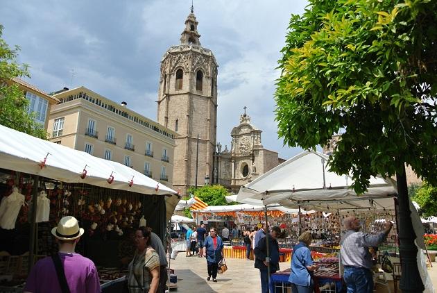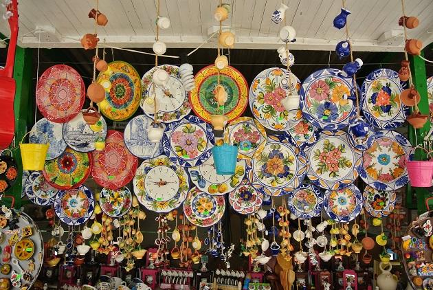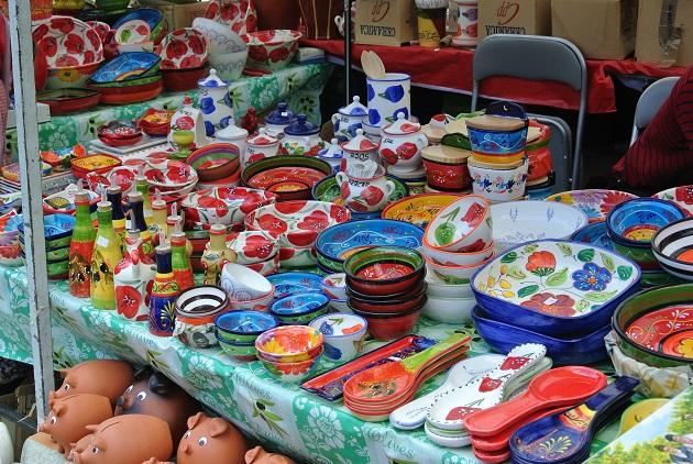露店には、所狭しと並ぶカラフルな食器類や植木鉢、飾り皿から、スペイン料理には欠かせない