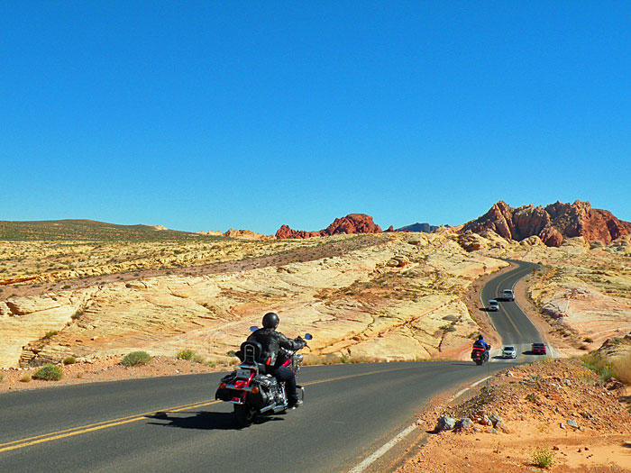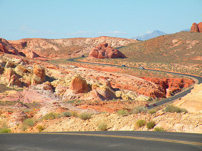 バレーオブファイヤー州立公園~「炎の谷」という名前の通り、オレンジがかった色の岩山が連なるワイルドな場所。
