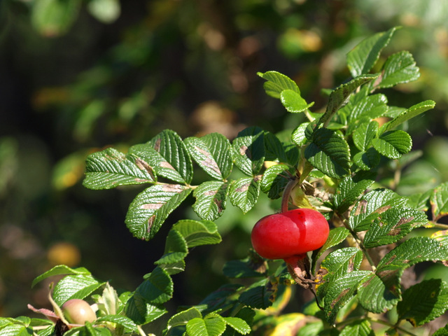 センターの駐車場脇にハマナスの実(ローズヒップ)がなっていました。