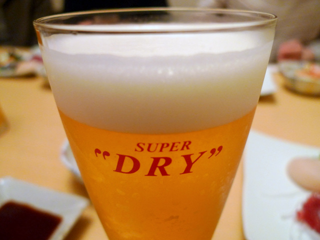 今夜はリベンジ成功を祝い、スーパードライで乾杯。