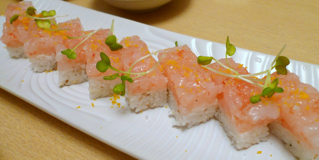 同店オリジナルのエビの押し寿司「あまえびまつり」。