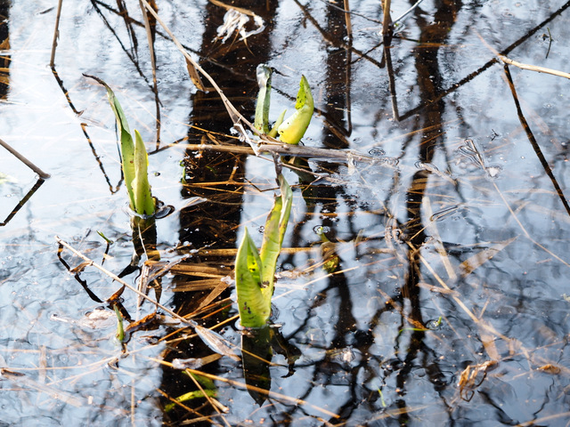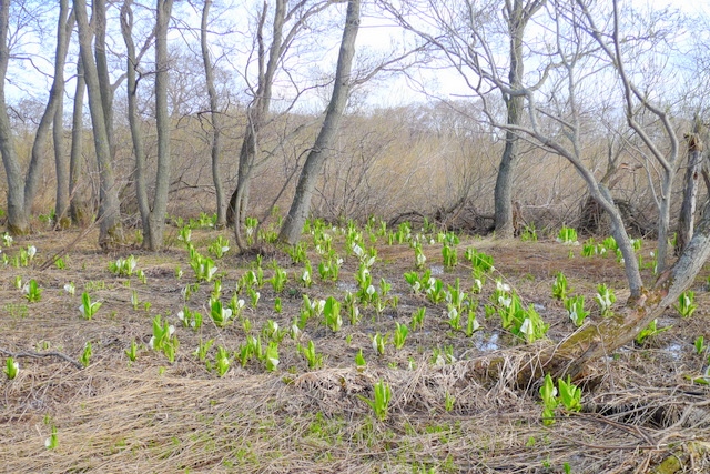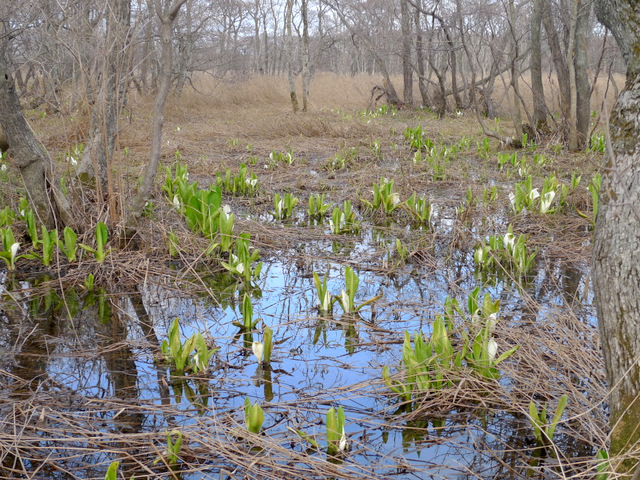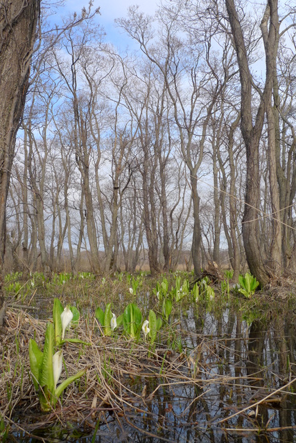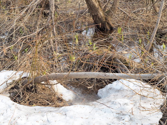 Skunk Cabbage and Lingering Snow in Makunbetsu Marshland a week earlier