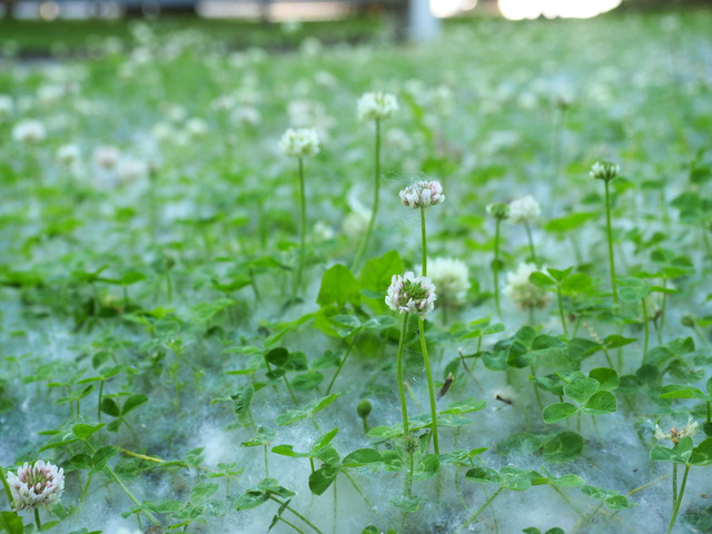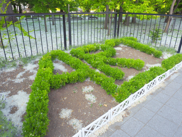北海道立近代美術館の庭を埋め尽くしている綿毛は