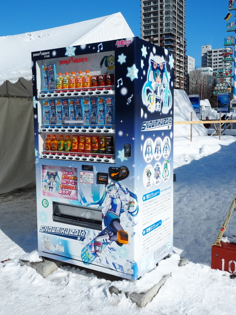 Vending machine of drinks with special label of HATSUNE MIKU at 11-chome