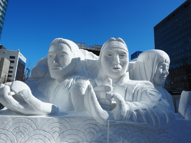 さっぽろ雪まつりの起源を思わせる雪像は、