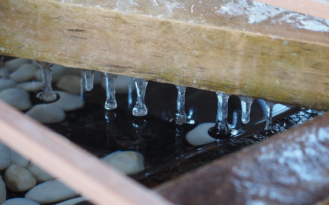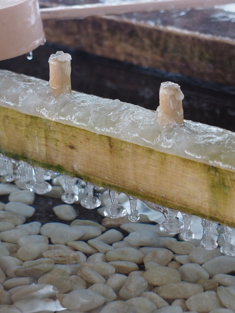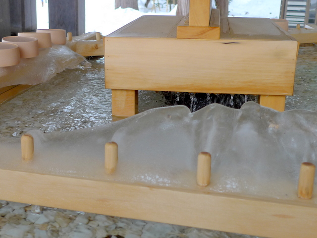 Tiny icles at the "Temizuya", a purification trough, in Hokkaido Jingu Shrine