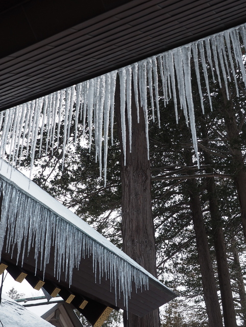 Icicles from the roof of the Designated Historic Landmarks of Otaru