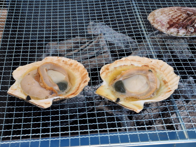 八雲産耳吊りホタテ道産バター焼き(500円)。