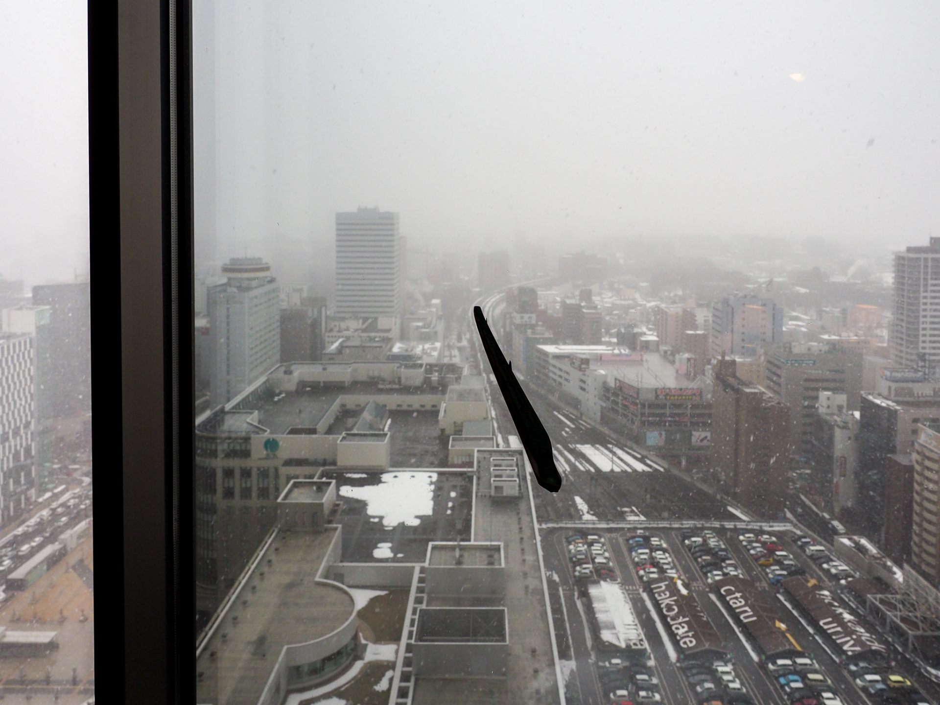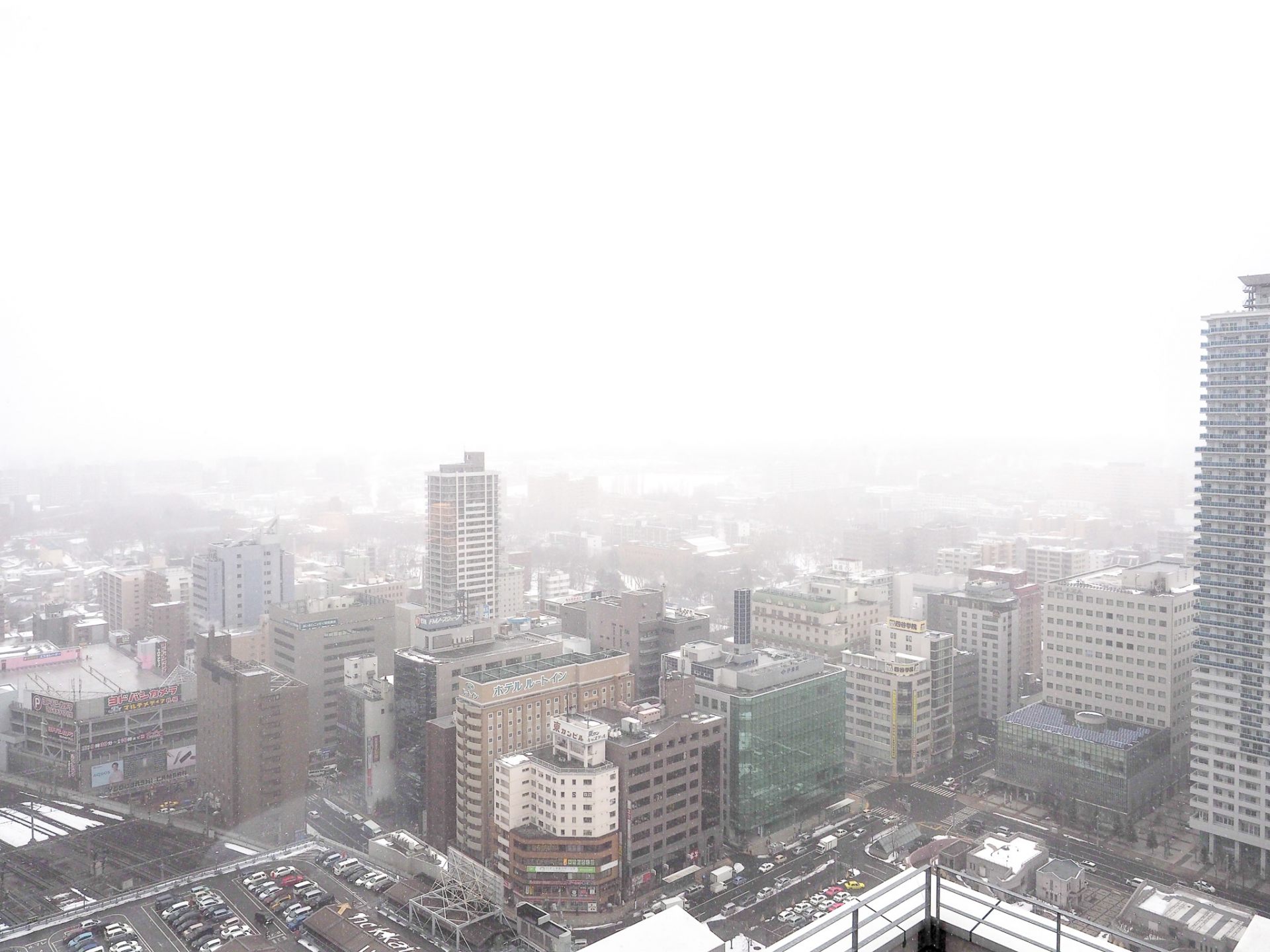 東京では桜が開花しましたが、まだ雪がちらつく札幌中心部の眺望。