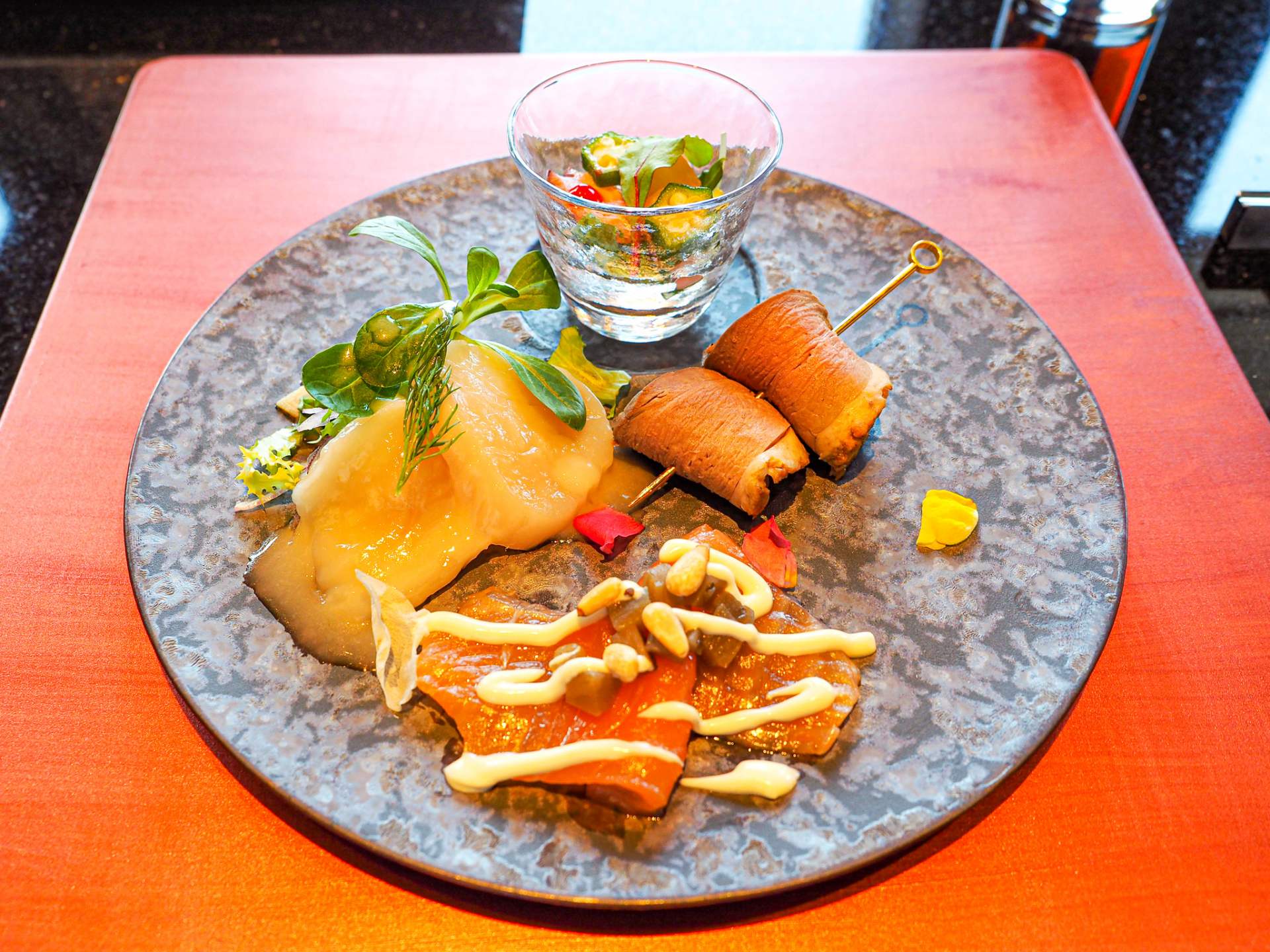 ホタテの甘さとサーモンマリネが特に印象的です。