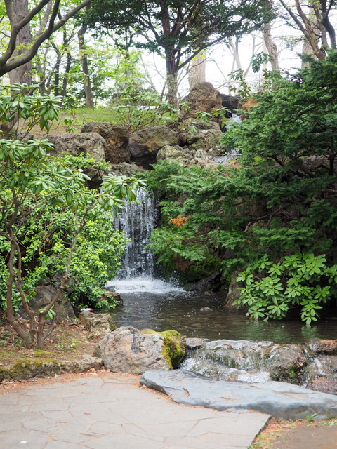 Japanese garden with flowers and trees from Hokkaido in Nakajima Park
