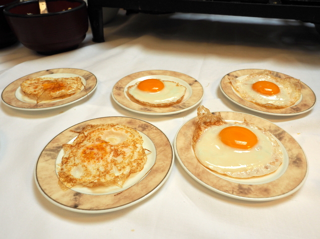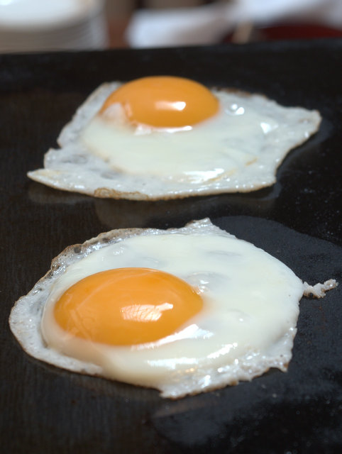 目の前の鉄板では、目玉焼きも焼いてくれます。