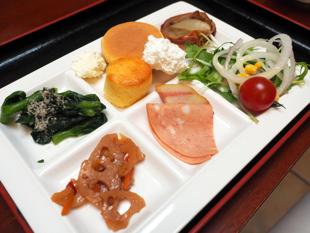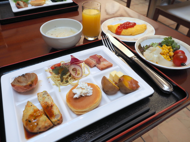 いろいろ目移りしながら、結局、和洋折衷朝食になりました。