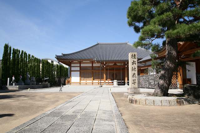 境内には桂六地蔵尊と書かれた石碑があり、本堂には地蔵菩薩が祀られています。