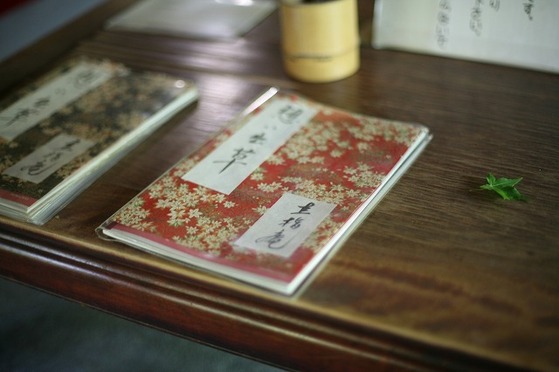 広げたノートを手にした観音さまは、本堂のノートに綴られた