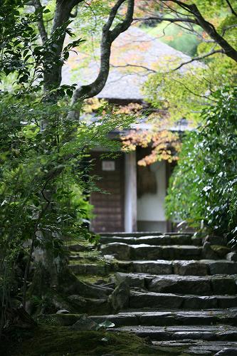 竹林と、もみじ美しい嵯峨野・直指庵(じきしあん)。