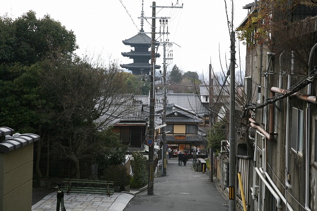 沢山の観光の方が歩くニ年坂から、左に曲がると