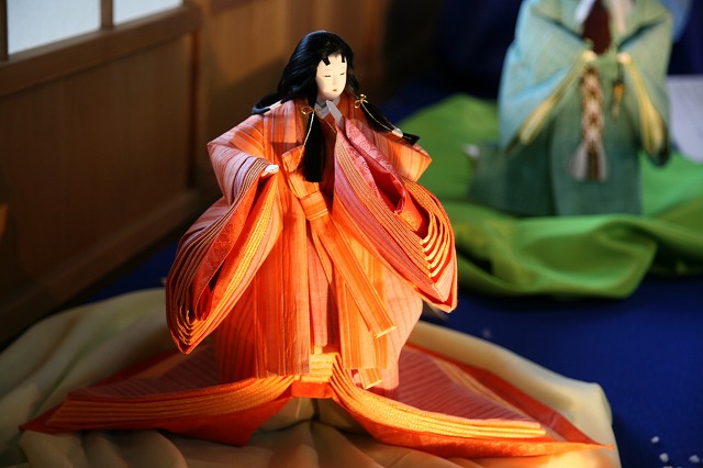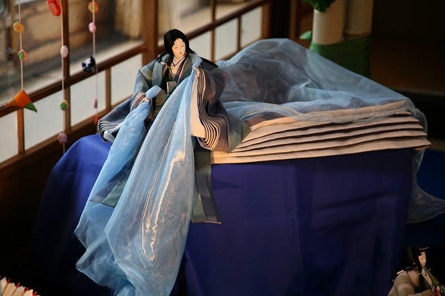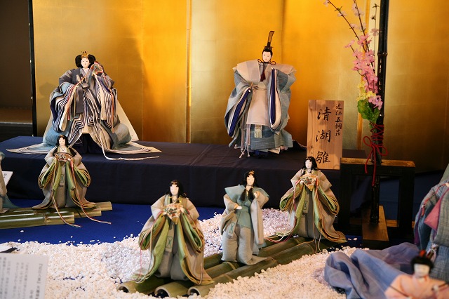 人形は、創作雛人形「青湖雛(せいこびな)」。