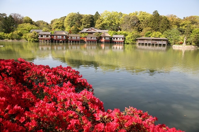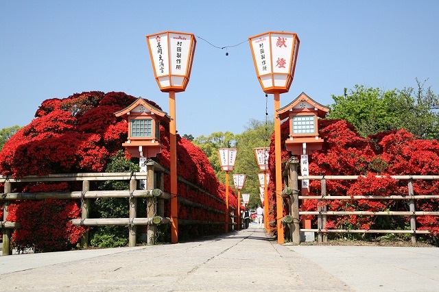 長岡天満宮の見頃を迎えた、キリシマツツジ。