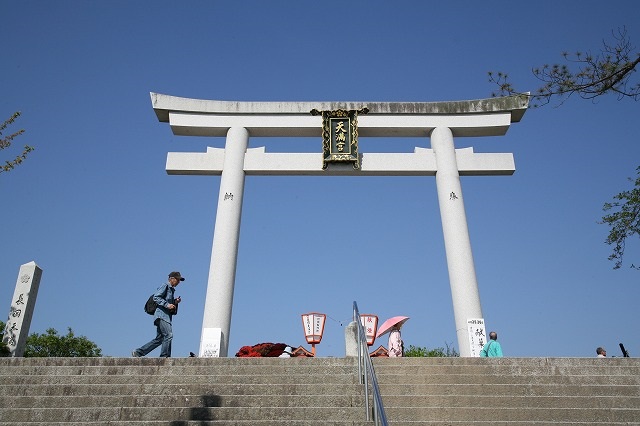 石段を登ると、キリシマツツジの花回廊が広がります。