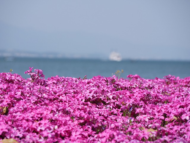 なぎさ公園を進むと、色鮮やかなシバザクラが咲いています。