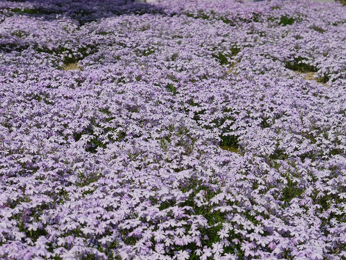 ハナミヅキとシバザクラの美しい景色が広がっています。