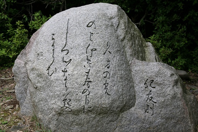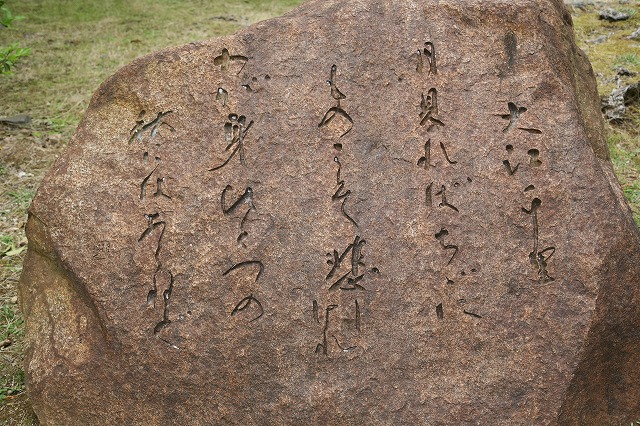 歌碑横には白いプレートがあり、和歌と現代語訳が記載されています。