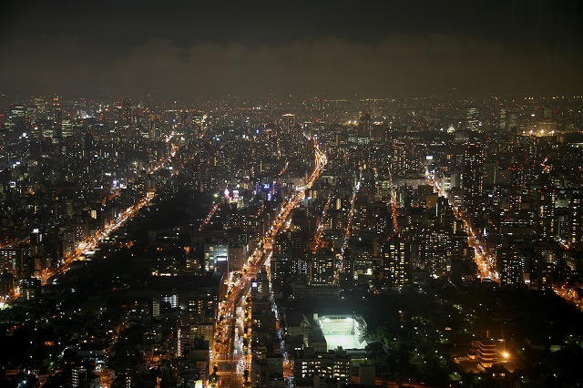 通天閣近くの明かりは新世界ですね。