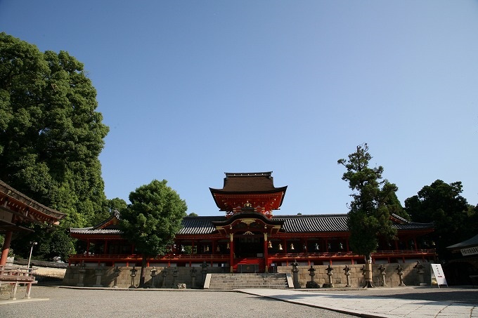 石清水八幡宮は京都府八幡市にあり、大阪府との県境にも位置しています。